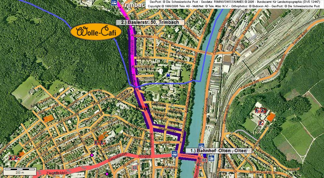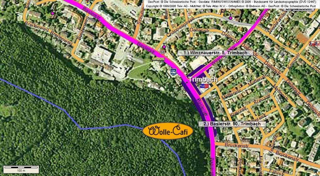 Parkieren beim Coop Trimbach. Von dort sind es 3 Gehminuten bis zum Wolle - Cafi an der Baslerstrasse 50 in Trimbach.